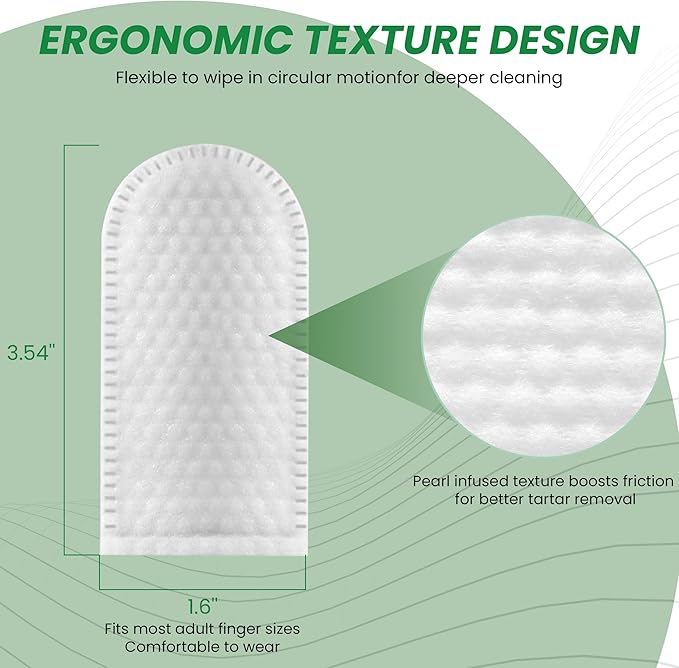 - Quick & Easy Dental Care – just one effortless minute of care. Imagine sliding a soft textured finger-wipe onto your hand, then gently guiding it along your pet’s teeth and gums while they cuddle into your lap. No toothbrush resistance, no messy paste—Our precision-textured wipe lifts away food residue, plaque and early tartar buildup with a soothing touch, creating a cleaner mouth and a calmer companion.