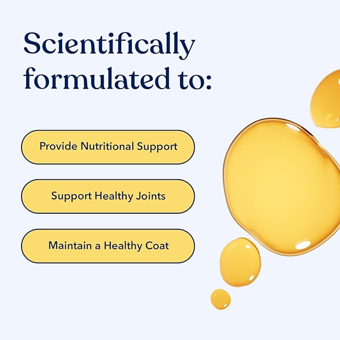 - Joint and mobility care: Multivitamin chews and fish oil provide glucosamine, chondroitin, and omega-3 fatty acids to support joint flexibility and comfort.