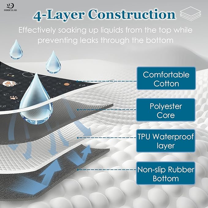 - Enhanced Comfort Design: The guinea pig bedding is crafted from 4 absorbent, quilted fabric that provides a soft, cozy surface while quickly absorbing urine. The bottom leak-proof backing, covered with rubber dots, ensures the bedding stays firmly in place without slipping, promoting a comfortable and hygienic environment for your furry friends