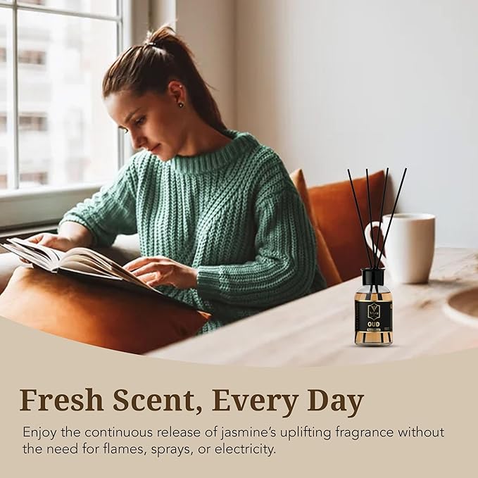 Luxury Reed Diffuser Set - 110ml Aromatherapy Diffuser with Natural Sticks, Aesthetic Room Decor, Long-Lasting Air Freshener for Home, Bathroom, and Office, Essential Oil Stick Diffuse (Oud Pack)