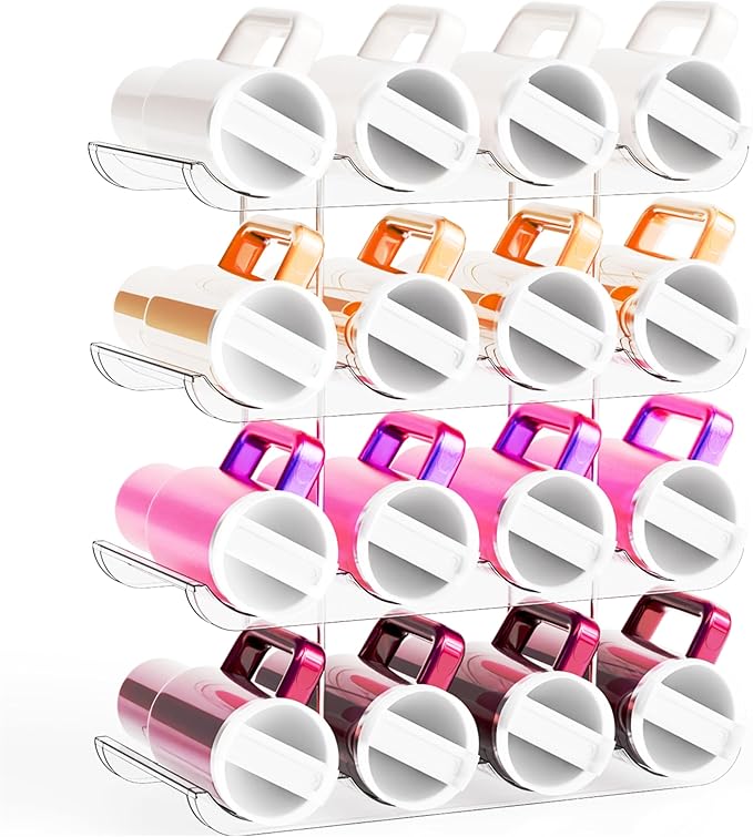 4 Tier Stackable Water Bottle Organizer for 40 oz Stanley Cup,Yeti and Other Tumbler Organizer,Larger Compartment Stanley Cup Holder,Wine Rack and Waterbottle Holder for Kitchen Cabinets,Countertop