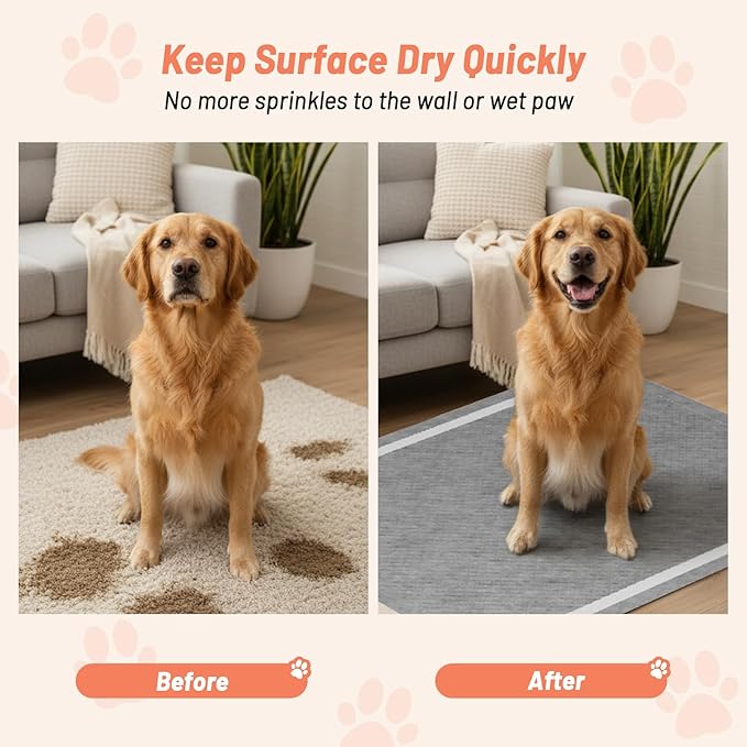 - Thicken & Leak-Proof Design: Our potty pads are more efficiently to prevent floor and carpet from damaging, absorb liquid faster, thickened PE film is leak-proof and durable, the polymer core turns urine into gel quickly, keep your pets, kids or the sick elderly feel comfortable all the day