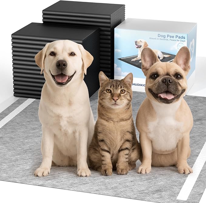 40PCS Charcoal Pee Pads for Dogs 32"x36", Extra Large Odor-Control Carbon Puppy Pads, Ultra-Absorbent & Quick Dry, Thicken Potty Training Pads for Doggie Cats Rabbits, Black Pet Piddle Pad