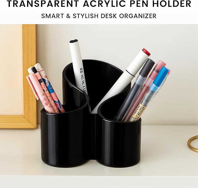 - Easy Visibility & Access : The black acrylic holder provides a clean, polished look while still making it easy to identify items, whether used as a makeup brush cup, clear storage organizer, or desk cup holder.