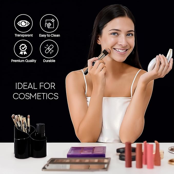 - Bold Black Finish : The elegant black makeup brush holder cup doubles as a stylish acrylic office supplies container or black desk accessories piece, perfect for professional workspaces or modern vanity setups.