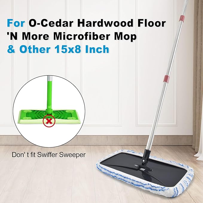 - 【Compatibility】This microfiber mop head replacement compatible with O Cedar Hardwood Floor N’More refills. It is also compatible with all other mops that use a 15x8" mop head. Please note that the mop handle is not included.