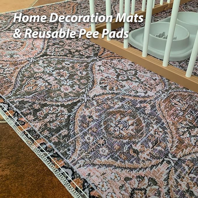 nunubaby 4PACK Washable Pee Pads for Dogs, Stylish, Non-Slip and Leak-Proof Pee Pads. Reusable Potty Pads for Dogs for Crates and Floors.(Brown/Multi, 24" x36")