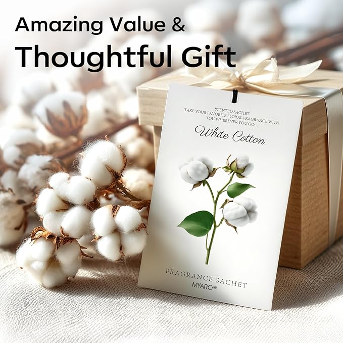 MYARO 12 Packs Scent Sachets for Closet Clothes Storage - White Cotton Fragrance Long Lasting Home Air Freshener Odor Deodorizer