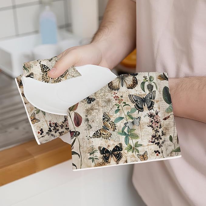 2 Pcs Vintage Butterfly Kitchen Towels, Rustic Botanical Decorative Absorbent Microfiber Dish Cloth Tea Towel, Artistic Waffle Soft Hand Towels for Farmhouse Home Bathroom, Butterfly Gifts 2
