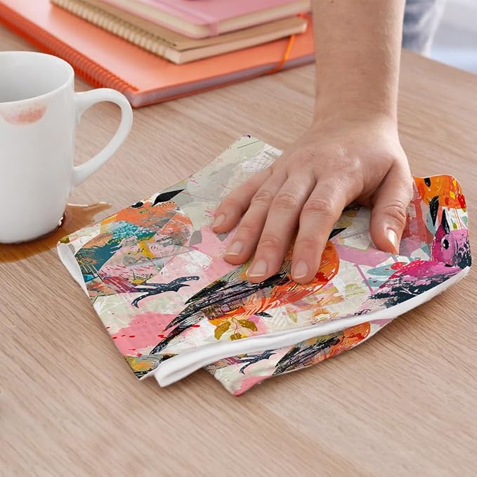 2 Pcs Abstract Bird Kitchen Towels, Colorful Art Decorative Absorbent Microfiber Dish Cloth Tea Towel, Waffle Soft Hand Towels for Farmhouse Home Bathroom, Housewarming Gifts