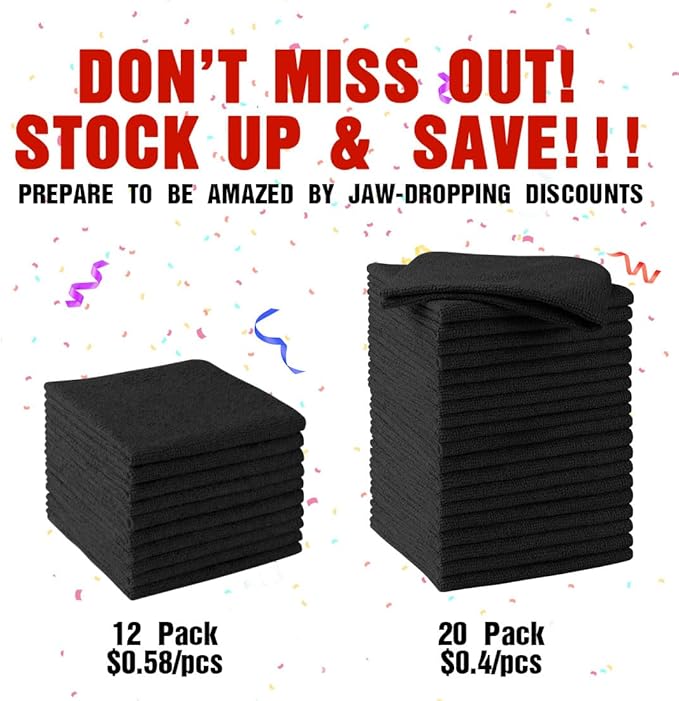 HOMEXCEL Black Microfiber Cleaning Cloths 20 Pack, Highly Absorbent, Lint & Scratch-Free Cleaning Rags for House Kitchen, Microfiber Towels for Car 11.5 x 11.5 inch
