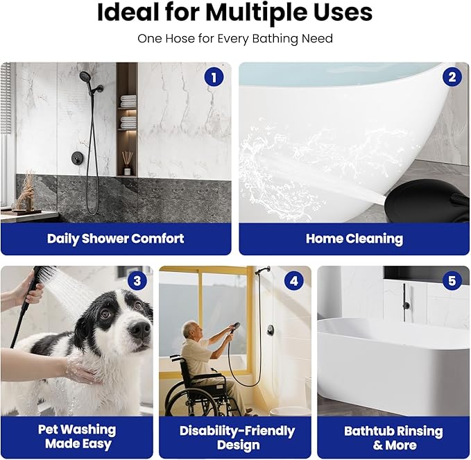 - Versatile Use for Daily Needs: Perfect for handheld showers, pet bathing, baby care, elderly assistance, and deep tub cleaning—this extra-long extension hose makes every bathroom task easier: 99inch /118inch-8 ft/ 9.8 ft.