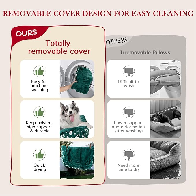 - WATERPROOF & EASY TO CLEAN: Don't worry about getting the orthopedic foam dog bed wet, the washable dog bed cover has a lining on the back to keep off liquid leakage and protect the foam. Removable cover with zipper support machine washing and low-temperature drying.