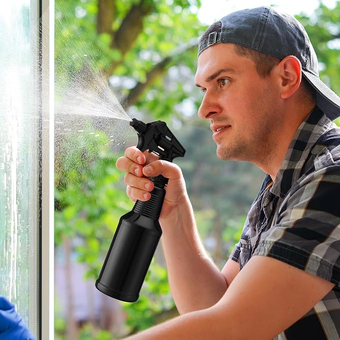 - Leak-proof Sprayer: these black spray bottles for cleaning are equipped with a strong trigger and adjustable nozzle, single stream, atomized spray and two "off" positions are available, easy to use, just gently turn the nozzle to adjust; Note: please switch "off" to "spray" or "stream" before use