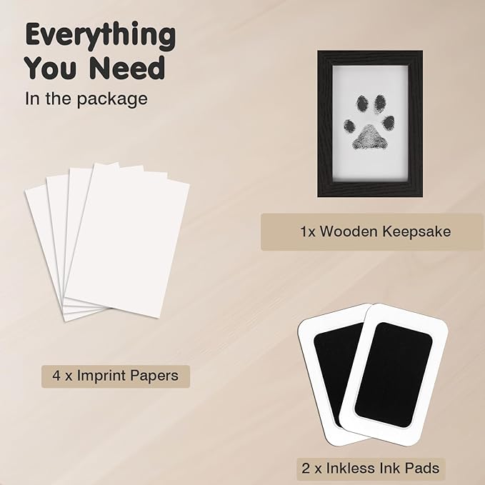 - Complete Keepsake Gifts: This pet paw print impression kit includes 2 pcs of inkless ink pads,4 imprint cards and 1 wooden frame, making it the perfect way to preserve and display your pet's or baby's first prints. An ideal gifts for new moms or pet lovers, capturing memorable moments for a lifetime.
