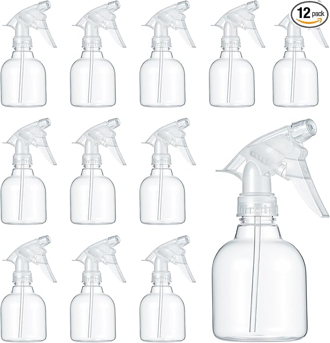 12 Pcs 8 oz Empty Plastic Spray Bottle with Trigger Sprayers Pet Adjustable Head from Fine to Stream Refillable for Hair, Plants, Cooking, Pets, Bath, Beauty, Cleaning, No Leakage (Clear)