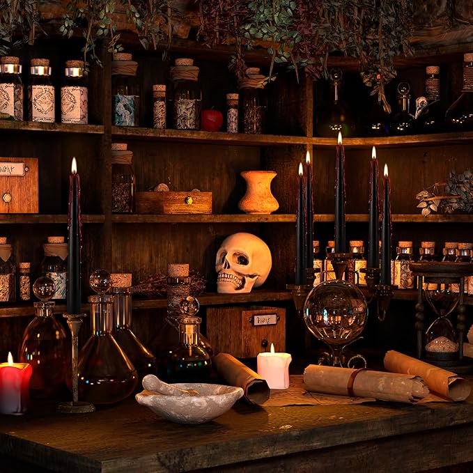 - Spooky "Bleeding" Effect These black taper candles feature a unique design that “bleeds” red wax when lit, creating a chilling vampire-inspired ambiance—perfect for Halloween parties, gothic themes, or mysterious rituals.