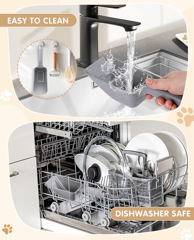 - 2-Pack Value Set – Includes two durable plastic grey scoops, perfect for keeping one in the pet food bin and another for travel or backup.