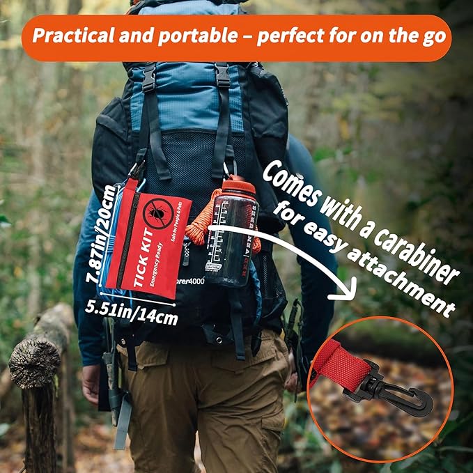 - PORTABLE DESIGN: Compact and lightweight (7.9" × 5.5" × 1", 0.33 lbs). Fits easily in your backpack, car, or travel bag to keep you prepared wherever you go. Perfect for hiking, camping, or road trips, it includes tick removal tools for humans and dogs to safely remove ticks during outdoor activities. Equipped with a handy strap for easy attachment to your backpack or gear