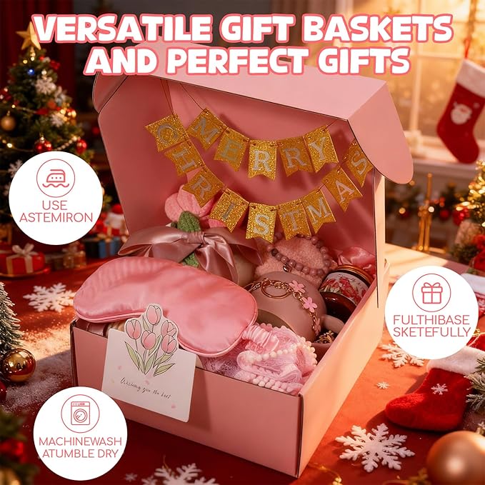 - Elegant box: all items are neatly arranged in a sturdy pink gift box with Shred Paper Filler and a decorative banner, creating a luxurious unboxing experience with no extra wrapping needed; The banner can spell to birthday, Valentine's Day, Christmas, Graduation, You can add a photo of the gift owner to create a unique box