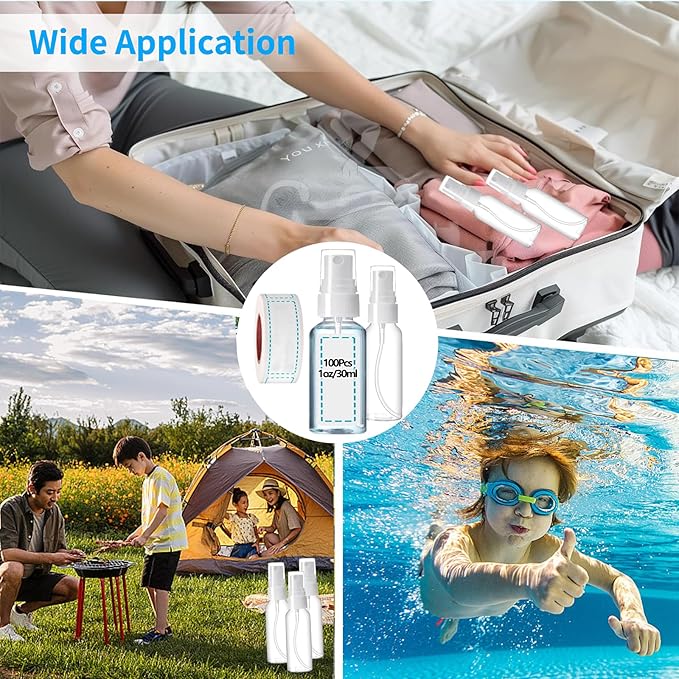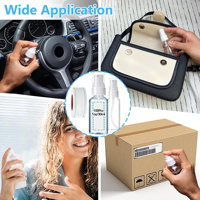- 【100 Pcs 1oz Mini Spray Bottle】: The package includes 100 Pcs 1oz/30ml refillable small spray bottles. The clear bottle allows you to accurately identify the substances you are storing. Perfect travel spray bottle for all your needs whether traveling or going outside.