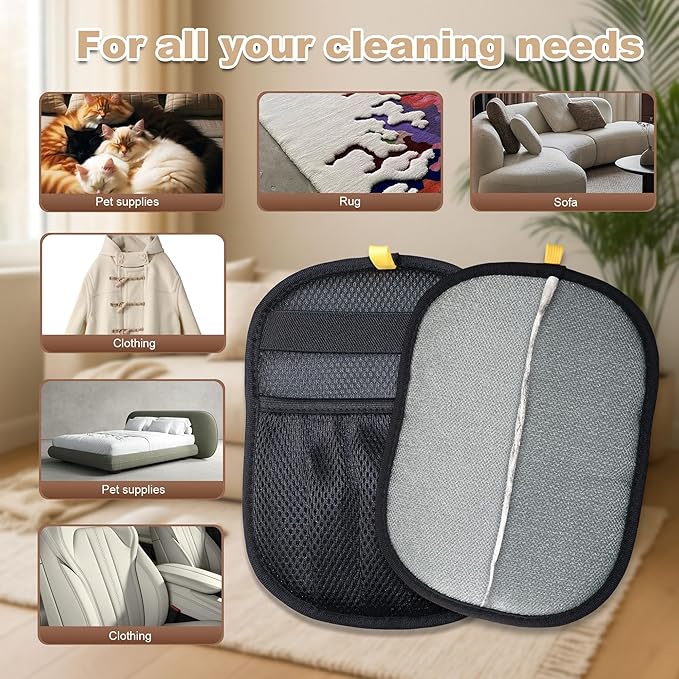 - 【2-in-1 Grooming & Multi-Surface Versatility】 One glove, multiple uses! Gently massage and de-shed loose fur during bath time, then use the same glove to clean sofas, carpets, bedding, clothes, or car seats. Perfect for handling both pet grooming and household cleaning with ease.