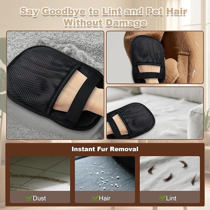 - 【Effortless Static Cleaning – No More Sticky Rollers】 Say goodbye to endless sheets and sticky rollers! Harnessing powerful static electricity, this glove instantly attracts and lifts stubborn pet hair, lint, and dust in one smooth glide. Even hard-to-remove fur disappears in seconds—effortless and effective.