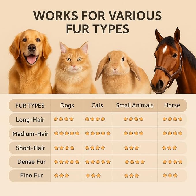 - 【Perfect for Multi-Pet Households and All Breeds】An all-in-one solution for every pet in your family. Whether you have a dog, cat, rabbit, or even a horse, this versatile brush is designed to be gentle and effective on all fur types and sizes.