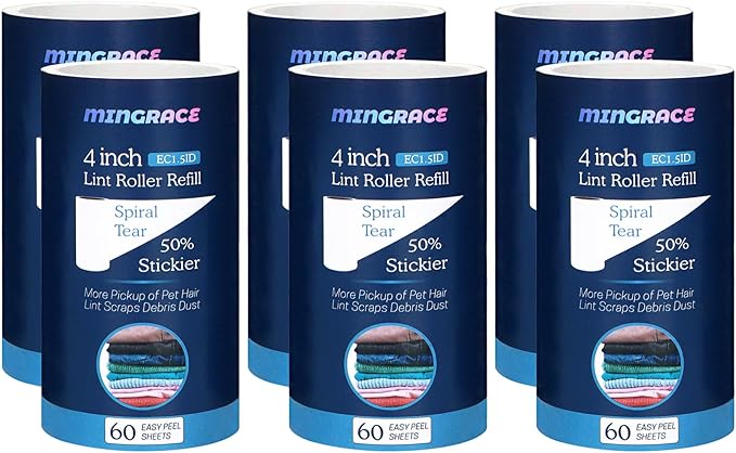 4 inch Lint Roller Refills Only Compatible with Evercare Extra Sticky Pet Hair Remover Lint Rollers, 50% More Pickup, 60 Sheets Each Refill, 6 Pack, 360 Sheets Total (1 1/2'' Inside Dia.)
