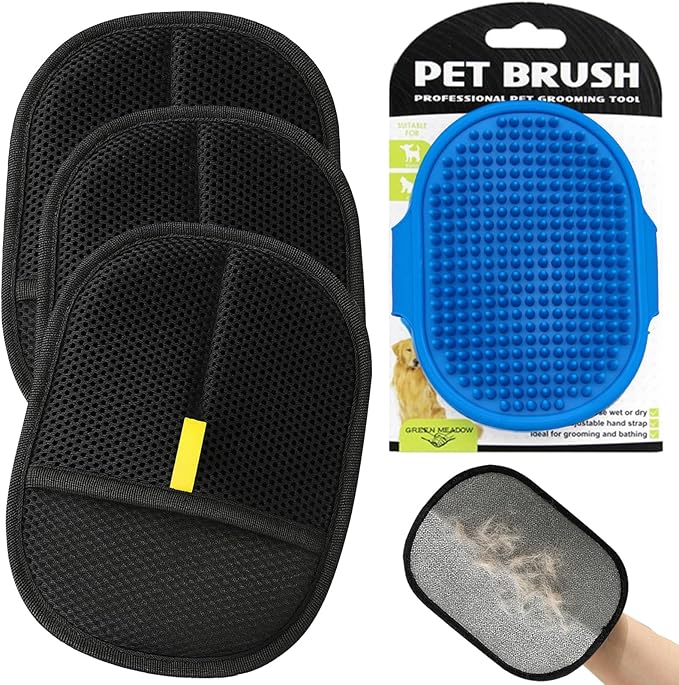 - Glove + Silicone Brush Perfect Set:Tackle pet hair from every angle with our ultimate 3-in-1 cleaning kit! This set includes 3 reusable electrostatic gloves for broad-surface cleaning and 1 blue silicone scraper brush. The gloves grab embedded hair effortlessly, while the scraper is perfect for stubborn clumps and cleaning the gloves themselves. No more struggling with single-tool solutions!