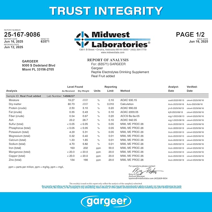 'ReptiLyte' Electrolyte Drink Supplement with Fruit for Reptiles | Hydration & Palatability Boost | Bearded Dragons, Geckos, Lizards, Tortoises | Made in USA. Enjoy!