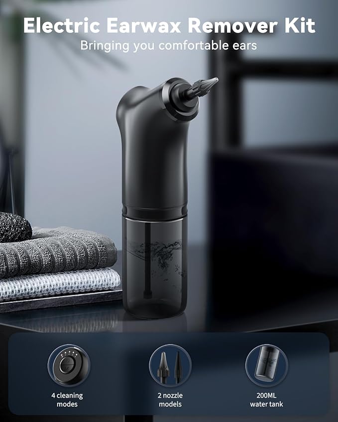 - 【Simple and Effective】 This ear cleaning kit features four different cleaning modes (normal, gentle, pulse, and strong), making it an effective ear wax removal tool for every earwax situation. You can easily and effectively remove earwax and maintain ear hygiene in the comfort of your own home, saving time and money by avoiding costly medical care.