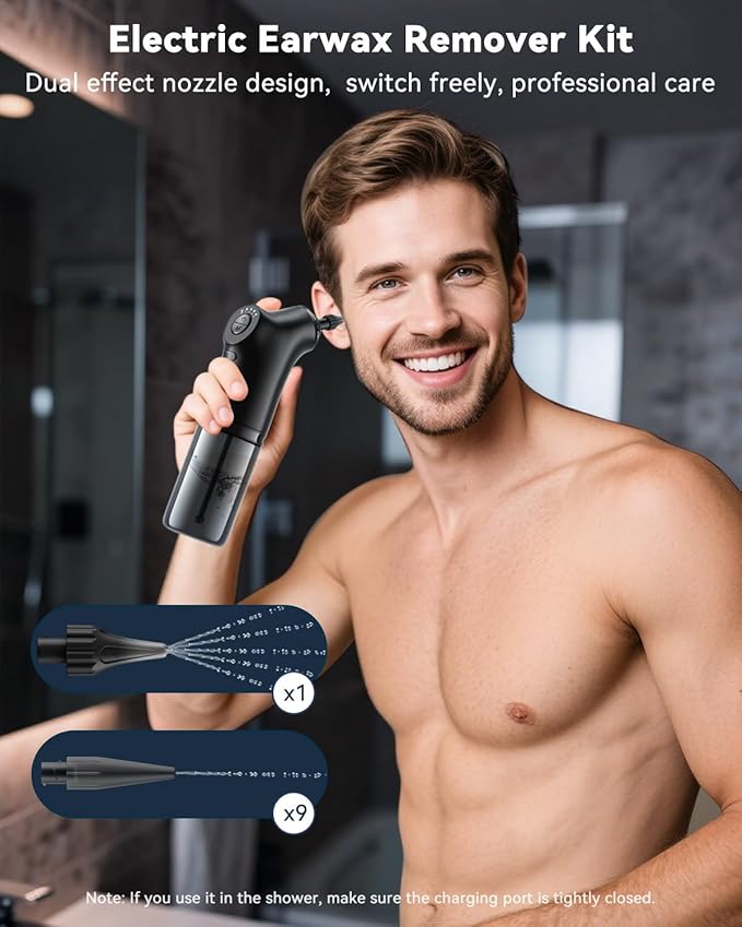 - 【Dual-effect cleaning】 This ear cleaner earwax removal device comes with two soft silicone eartips.The five-hole model provides a gently dispersed flow, while the single-hole model provides a focused flow, making it easy to address various earwax conditions.As an ear flushing kit for adults, it utilizes an advanced ear irrigation system to gently remove earwax without irritation.