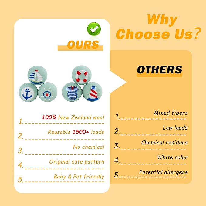 - ššššššššš ššš š šššššš - A set of 6 wool balls with nautical pattern is the perfect eco-friendly gift for any occasion, you can give it to an eco-conscious family member, and bring them joy and efficiency with these cute and reusable drying balls, making every laundry day a fun day for them.
