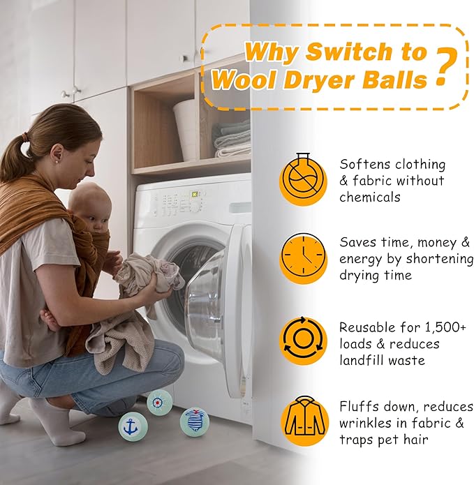 - ššš ššš šššššššš & šššššš šššššš - Wool has natural anti-static properties, instead of liquid softeners containing chemicals, wool balls for dryer can make your clothes softer and fluffier, reduce wrinkles and static electricity attraction. At the same time, these cute laundry balls for dryer effectively prevent pet hair from getting into your clothes, so you can enjoy clean, static-free clothes, which is actually suitable for families with pets.