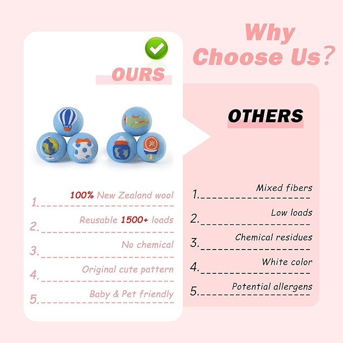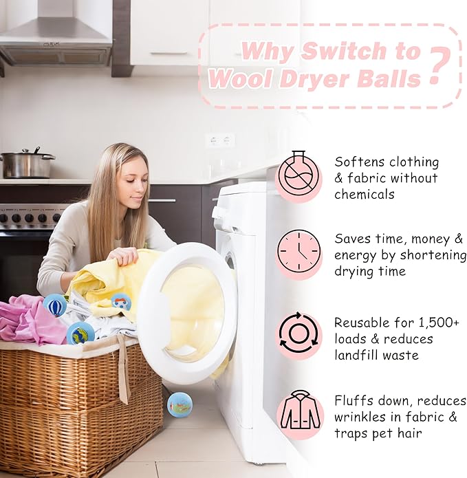 - ššš ššš šššššššš & šššššš šššššš - Wool has natural anti-static properties, instead of liquid softeners containing chemicals, wool balls for dryer can make your clothes softer and fluffier, reduce wrinkles and static electricity attraction. At the same time, these cute laundry balls for dryer effectively prevent pet hair from getting into your clothes, so you can enjoy clean, static-free clothes, which is actually suitable for families with pets.