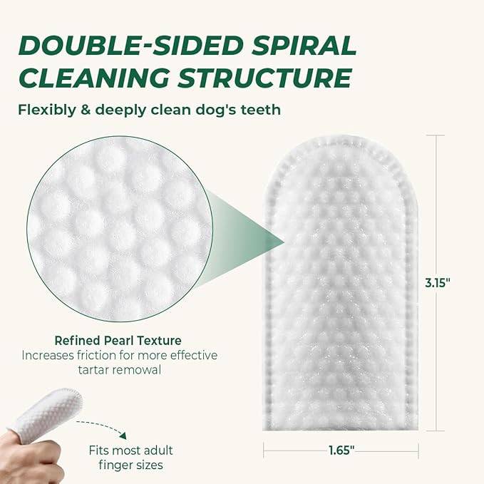 - 👆 Finger Wrap Design for Better Reach The textured, finger-shaped design allows easy access to hard-to-reach spots in your pet's mouth, giving you better control while cleaning their teeth and gums.