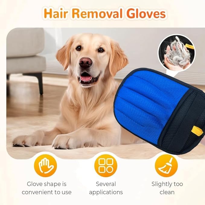 - Efficient Pet Hair Removal:The Pet Hair Removal Glove uses static electricity and a unique design to effortlessly collect pet fur. Say goodbye to sticky lint rollers and ineffective brushes – this glove is easy to use and highly effective at removing pet hair from clothes, furniture, and more