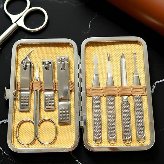 - Manicure Set: Professional Manicure kit contains 8pcs nail, toenail, facial care multi-purpose tools. Multifunctional include hand care, facial care and foot care all in one.