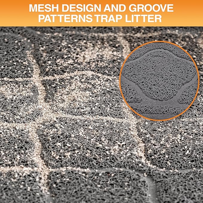 - CAT LITTER TRAPPING MAT: No more stepping on pieces of litter with this litter catcher mat. This cat litter mat has deep grooves and thick coils that trap litter to keep your floors clean. Place it in front of the litter box, and it will collect both the litter kicked out of the box and the litter tracked out by your cat's paws.