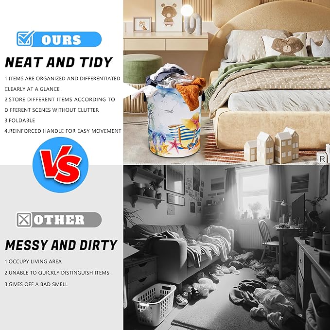 - Multi-Purpose Basket: In addition to laundry, it is also very suitable for storing and organizing books, blankets or other items. It has a wide range of uses, keeping your living environment clean, beautiful and tidy. It is a multi-functional product. The artistic design laundry basket is placed in the bathroom, bedroom, laundry room, children's room, dormitory and other places. It is a practical and fashionable item.