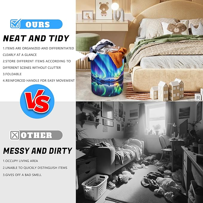 - Multi-Purpose Basket: In addition to laundry, it is also very suitable for storing and organizing books, blankets or other items. It has a wide range of uses, keeping your living environment clean, beautiful and tidy. It is a multi-functional product. The artistic design laundry basket is placed in the bathroom, bedroom, laundry room, children's room, dormitory and other places. It is a practical and fashionable item.