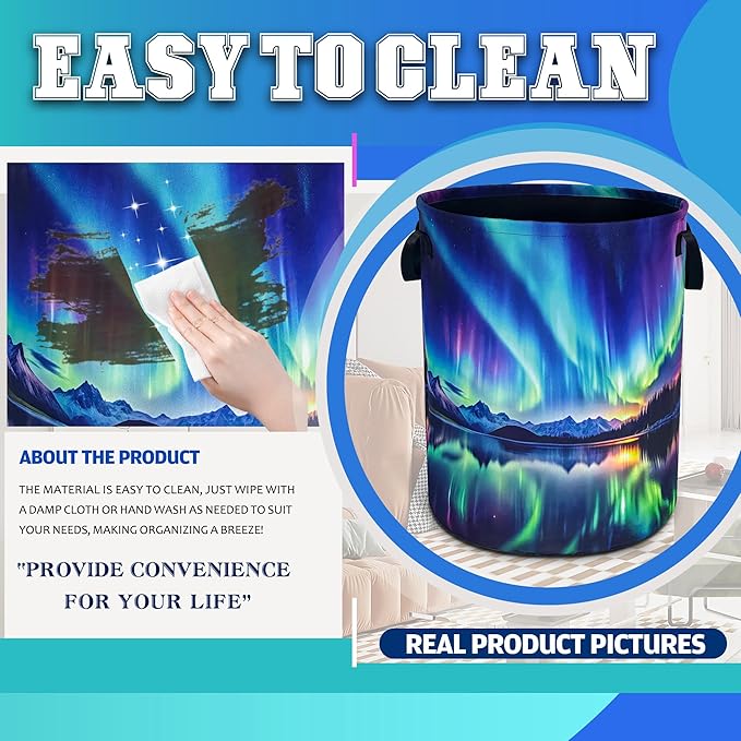 Aurora Laundry Basket Oxford Cloth Northern Lights Laundry Hamper With Handle Foldable Portable Clothes Storage Basket 18.9 X 16.5 In Storage Bag For Laundry Room/Bathroom/Bedroom/Dormitories