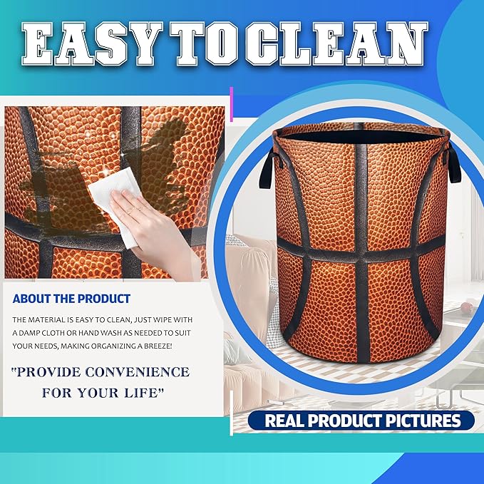 Basketball Laundry Basket Oxford Cloth Ball Texture Laundry Hamper With Handle Foldable Portable Clothes Storage Basket 18.9 X 16.5 Inch Storage Bag For Laundry Room/Bathroom/Bedroom/Dormitories
