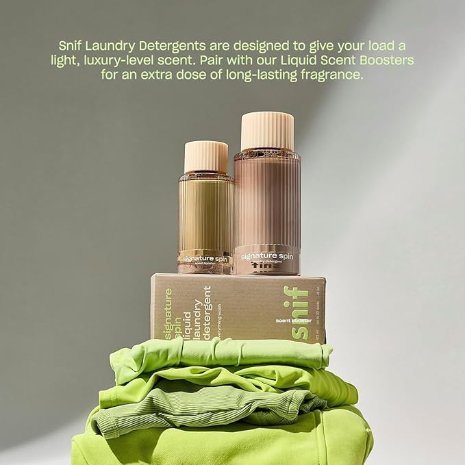 - SCENT PERFORMANCE: Use the detergent for a light touch of fragrance, or add the Liquid Scent Booster for a longer-lasting, luxury-level scent that carries through wash and dry cycles. Signature Spin is our go-to for a clean, classic finish with modern freshness.