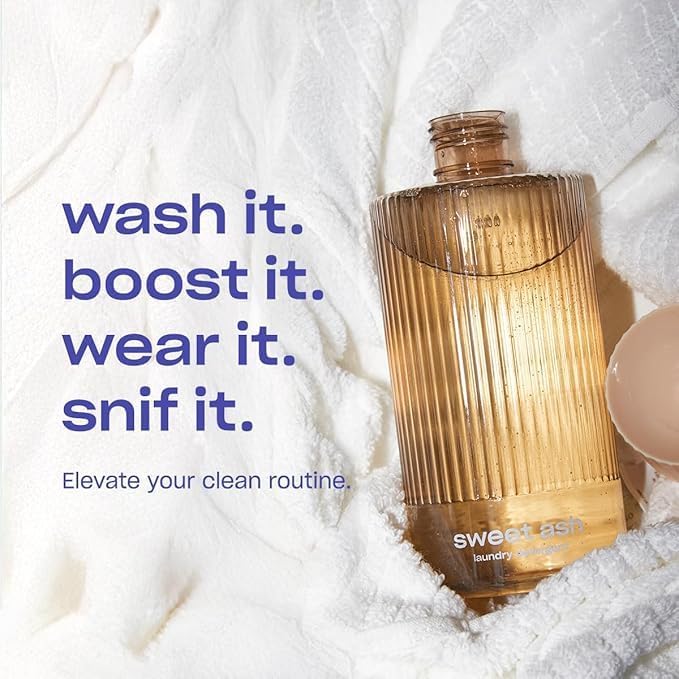 - SWEET ASH: Our most beloved scent smells as good on your clothes as it does on your skin. The down-to-earth combination of juniper, fir balsam, white moss, golden cedar, vanilla bean, and creamy tonka will turn your laundry list from chore to addiction. Get ready to shake that ash all over again.