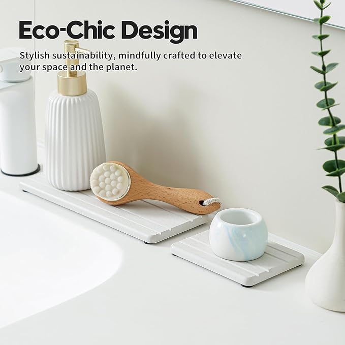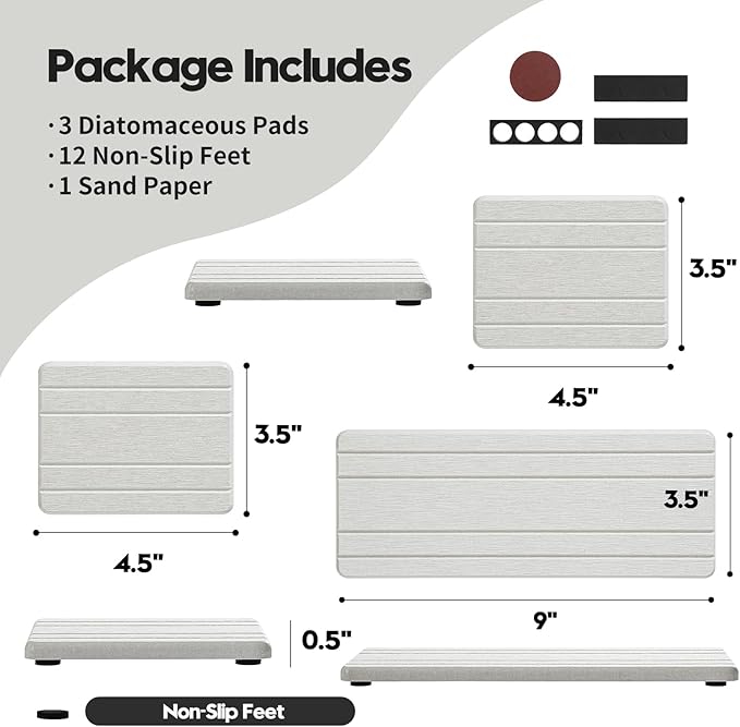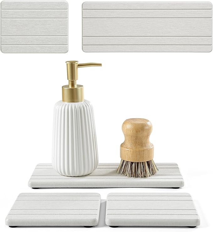 - 【Sustainable Materials】Natural diatomaceous earth dries instantly thanks to its ability to evaporate moisture. Safe, Sustainable and Long-lasting. The diatomite stone material used in these trays not only absorbs water quickly but also dries rapidly, preventing the accumulation of moisture and maintaining a dry surface for your items