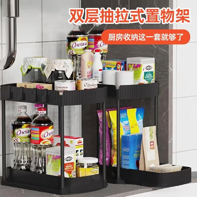 Ukeetap 2 Pack Multi-Purpose Pull-Out Storage Organizers, Under Sink & Cabinet Storage, 12.8 Inch, White (黑色)