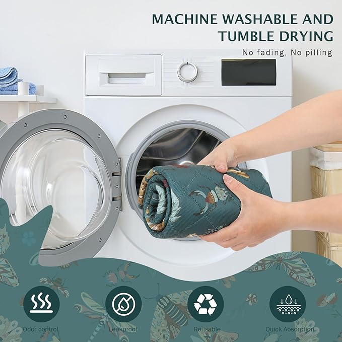 IEUUMLER Washable Pee Pads for Dogs, 2 Pack Insect Pattern Reusable Waterproof Puppy Potty Pads, Non-Slip Absorbent Pet Training Pads for Playpen Crate Bed EU014