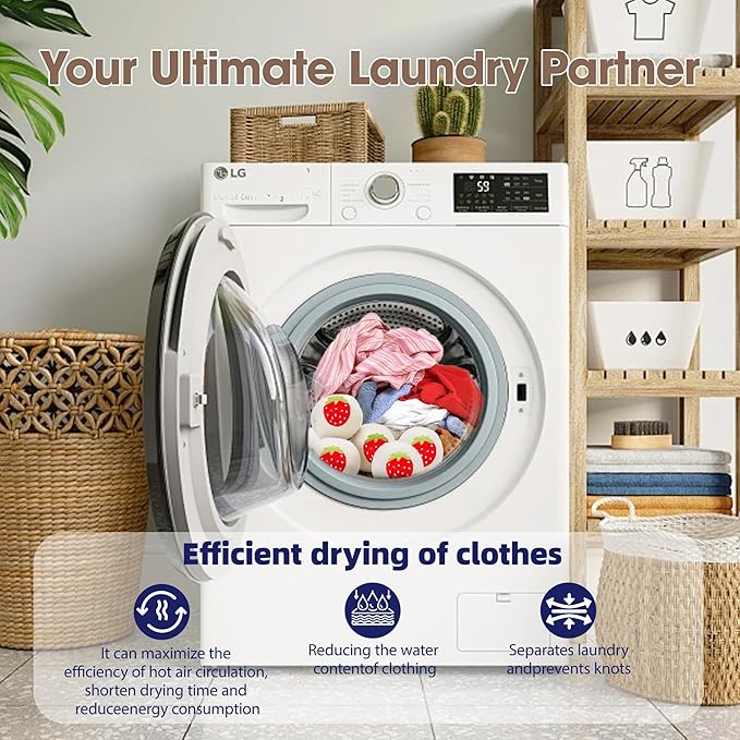 - 🍓These handy Laundry Wool Drying Balls reduce laundry drying time by up to 30%. On laundry day, this means significant time and energy savings. These wool drying balls speed up the drying process by allowing clothes to tumble freely, providing better airflow and heat circulation.